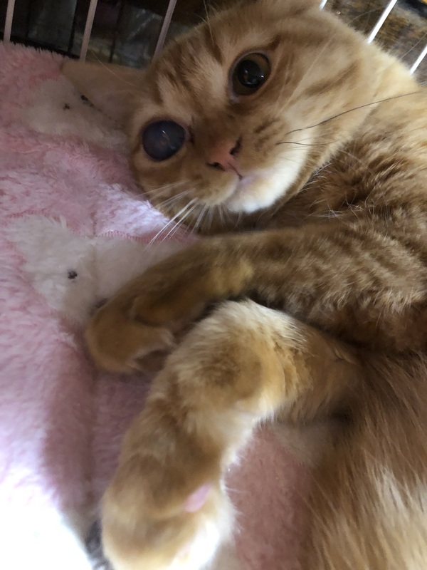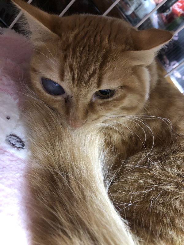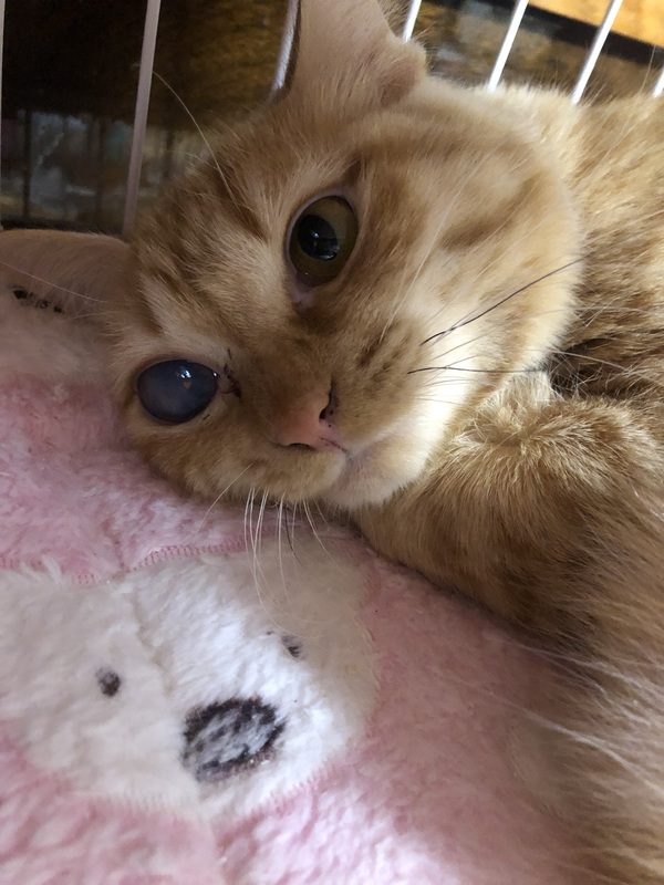 | 特徴(性格など) | やや長毛の茶トラの女の子です。 内弁慶な子で、最初は怖がって隅っこに行ってしまうかもしれません。 慣れると撫でてと抱っこアピールします。 モフモフで抱っこすると、手をまわしてくれます。抱き心地最高です。 右目は保護した時すでに眼圧が上がってパンパンに腫れていました。 手術と目薬で落ち着きましたが、視力はなく元にはもどりませんでした。 生活するには支障はなく普通の子と一緒です。 どうぞ宜しくお願いします。 |