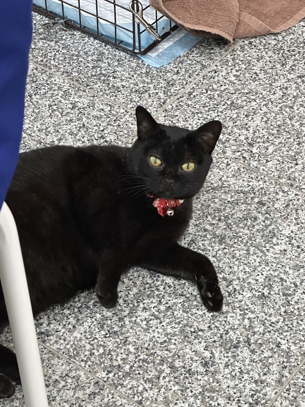 | 特徴(性格など) | クロネコちゃんです。 おそらく元飼い猫レベルで人の生活に慣れている子です。 人大好き 猫大好き 特に猫好きな人だぁーいすき! どんな人にも場所にも馴れられる すごく賢い猫ちゃんでふ。 |