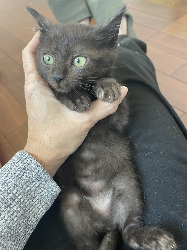 | 特徴(性格など) | 黒猫のようで、グレーっぽいような、成長すると今と色が違うかも知れません。とてもかわいいお顔をしています。 | ||
