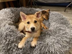 | 特徴(性格など) | ■特徴(仮の名前:ジョリ) 野犬ミックス♀推定2023.10月生まれ 体重4.2キロ(1/10現在)成犬時15キロ予想 ■性格・暮らし ・怖がりさんです。 ・とても元気いっぱいです。 ・トイレはシートでできますが失敗もあります。 ・お散歩は練習中です。 ・野犬の子どもと思われます。怖いことや物がたくさんあります。大きな気持ちで見守ってください。 ■今までに行った医療行為 ・検便(ー) ・ノミダニ駆虫薬(12/16) ・8種ワクチン2回目(12/27) ・マイクロチップ(12/14) ■今後行う予定の医療行為 ・狂犬病予防接種 ・避妊手術 |