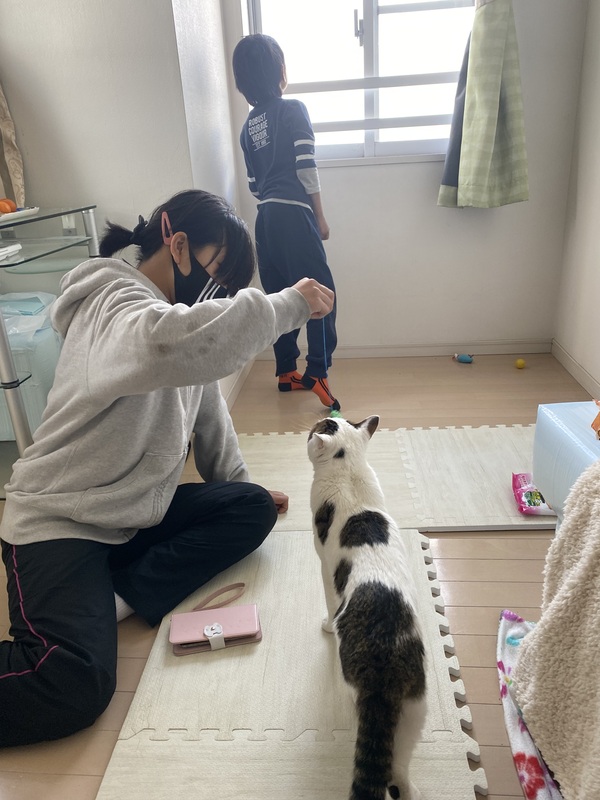 | 里親募集する理由 | 引越しされ空き家になったアパート窓が開いていて、泣いている猫をずっと気にしていた小4の子が、3週間経っても状況が変わらない為、小6の子に相談し、2階によじ登って救出。交番に行くところに出会い声を掛けました。その後、マンションに住んでいた方に、警察から連絡すると、飼っていない、寒いから家に入れていただけとの回答だったそうです。ノラ猫と判定し外に逃すと言われたので、こちらで保護しました。 ノミもなく、保護初日から膝の上から離れない甘えん坊さん、トイレもスムーズにしています。 人間との生活に馴染んでいて、とてもノラちゃんだったとは思えないです。 こちらは、元保護猫家族がいます。 年末に1匹の猫を腎臓病で亡くし、あと2匹のシニア猫がおり、新しい子と馴染めそうにないため、勇気と優しさで救出してくれた子供達の想いと共に、素敵な里親様に、命を繋げたいと思っています。 |