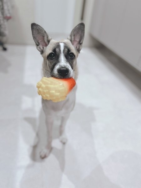 | 特徴(性格など) | 【名前】ポコ 【生年月日】推定2023.10月中旬頃生まれ 【種類】MIX(成犬時には13~15kgくらいになると思います)4/30現在11.5kg 【毛色】フォーン&ホワイト 【性別】メス 【避妊】済 【ワクチン】 2回目接種済み 【駆虫】済 【健康状態】良好です。 【性格】少々臆病ですが、慣れるまでそんなに時間はかかりません(*^^*) 気のいい子?気の弱い子?で、強気な面がなく先住犬ともいがみ合いなど揉めることはありません。 陽気であどけなく、性格も良くて飼いやすい子です。 良くなつき室内あちこち付いてきます。 活発でお散歩大好き!だいぶ上手に歩けるようになってきました。 おもちゃで遊ぶのも大好きで、興奮して振り回して爆走しています。投げると持ってきてくれます。ひとり遊びも上手! 同居の先住犬猫とも遊んでいますが、まだ中身は子犬ですのでしつこくして度が過ぎるとよく怒られています笑 車での移動は、吠えたりせずに大人しくケージに入っています。病院で先生やスタッフに威嚇したり噛み付くようなことはありません。診察台でも大人しくしています。 ハウス(食べ物があれば)、オスワリ、マテできます。 【トイレ】トイレは完璧に覚えていますが、綺麗好きなのでシートにおしっこやうんちがあると近くの床にしてしまうこともあるため、こまめに取り替えてあげられる方が望ましいです。 特にうんちが嫌いで、した後に1度逃げてから睨みつけています笑 【ケージ 】就寝時は保護当初慣れるまで鳴きましたが、数日してからは大人しく朝まで静かに寝ています。 ハウスはご飯のとき、おやつの時は急いでケージ走って行きハウスの指示に従い、お座りして待っています。 留守時もケージに大人しくお留守番出来ますが、あまり長時間は留守にした事がありません。 5時間以内の留守は経験済み。 とにかくトイレが汚れるのが嫌いなので、留守時間が長めのかたは広いトイレを用意できる方を希望します。 【理解している言葉】 ハウス(ご飯かおやつの時は走ってケージにハウスします) オスワリ マテ ダメ イタイ オモチャ ガム シッコ チョーダイ ネンネ |