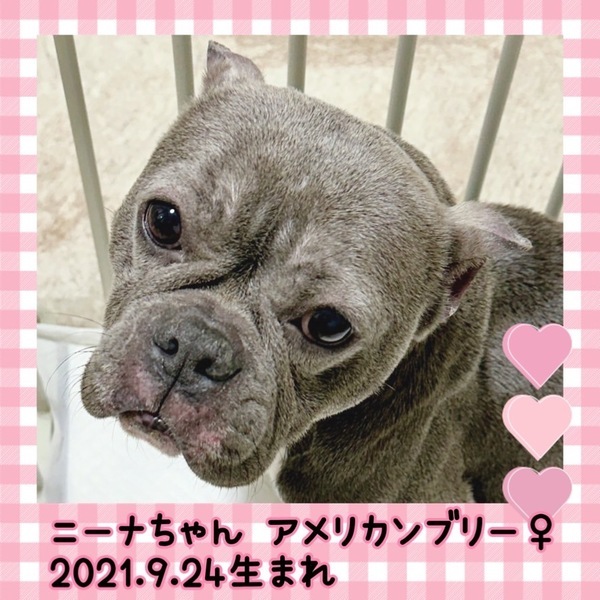 | 特徴(性格など) | 名前 ニーナ 種類 アメリカンブリー 色 ブルー 年齢 2021/9/24 性別 メス 体重 11.2kg -------------------------- ワクチン6種混合接種済 フィラリア陰性(-) マイクロチップ装着済 避妊去勢手術済 メディカルチェック聴診触診、血液、検便、異常なし 外耳炎治療中 駆虫薬投与、ノミダニ駆除済、スケーリング済 -------------------------- とても穏やかで大人しいこですが 飼育の経験や知識が必要な犬種になります。 犬種特有の強さなどもあるので ご理解のある方、経験のある方を希望します。 日常の様子はInstagramでご覧ください。 https://instagram.com/linkplus_wan.nyan?igshid=YmMyMTA2M2Y= |