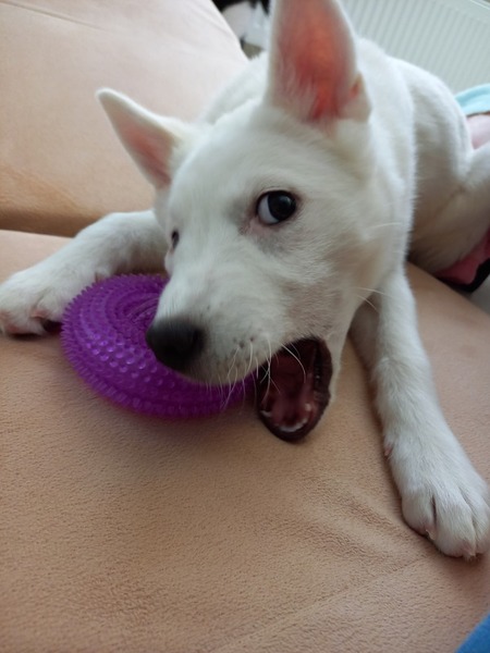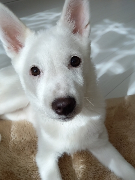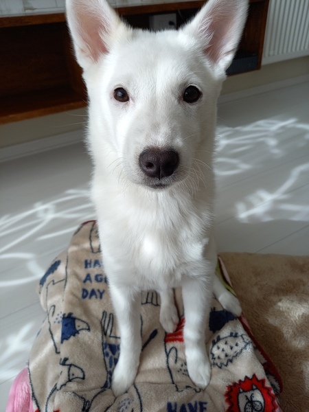 | 特徴(性格など) | 【名前】ゆきな 【生年月日】推定2023.11月上旬~中旬頃生まれ 【種類】MIX(成犬時には10〜15kgくらいになると思います) 【毛色】ホワイト 【性別】メス 【避妊】未(適齢になり次第,飼い主様で必ずお願いします) 【ワクチン】2回目接種済み 【駆虫】済 【健康状態】良好です。 【性格】少々臆病ですが、甘えん坊な性格でもあり、慣れた人には良くなつき常にくっ付いて横に座ってます。 子供が大好きで、おもちゃで遊ぶより子供達と走り回って遊ぶのがとても大好きです。 同居の先住猫達ともよく遊びますが、子犬ですのでしつこくして度が過ぎるとよく怒られています。 ご飯、おやつの時には【ハウス,お座り,待て,お手】ができるようになりました。 遊んでいる時には、タッチは?と言うとタッチもしてくれます。 【トイレ】トイレは完璧に覚えていますが、シートにおしっこやうんちがあると嫌なのかシーツをグチャグチャにする時もあるので、こまめに取り替えてあげられる方が望ましいです。 うんちした後は踏むことなく、サッと走って来てうんちを片付けてもらうのを待ってます。 【ケージ 】就寝時は保護当初慣れるまで夜中から朝方にかけて鳴いてましたが、数日してからは大人しく朝まで静かに寝ています。 留守時もケージに大人しくお留守番出来ますが、あまり長時間は留守にした事がありません。 とにかくトイレが汚れるのが嫌いなので、留守の短めの方を希望します。 |