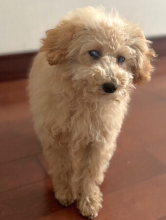 | 特徴(性格など) | 犬種 トイプードル 毛色 アプリコット 年齢 2023年8月8日生まれ 体重 3.5キロ 性格 明るく活発 人にも犬にもフレンドリーです トイレ オシッコはシート成功率90%以上であまり失敗はなく足上げもしません。便はほぼ失敗です。散歩時に外で排泄もします。 散歩 色々な所の匂いを嗅ぎながらよく歩きます。ふらふらと寄り道が多いのと拾い食いをするので練習中です。階段と段差が苦手で、見えづらいのか足を踏み外すことがあるので注意が必要です 日常の様子 仔犬らしく他の犬たちとよく遊び、イタズラもします 食いしん坊です お手入れ 毎月のトリミング・毎日のブラッシング・歯磨き・耳掃除・涙やけケアなど ※トリミング犬種なので、必ず毎月1回サロンでトリミングをして可愛く清潔にして頂ける方、それだけの経済的余裕がある方を希望します フード ヒュプレモパピー 用+ミシュワン 健康状態 フィラリア ワクチン 混合ワクチン2回済み マイクロチップ 装着済み 避妊・去勢 去勢手術済み その他 触診・聴診・血液検査・検便、異常なし 駆虫薬投与・ノミダニ駆除済み ★生まれつき両眼が白濁しています。日常生活に支障はありませんが、視力が弱いかもしれません ★就寝時一緒に寝てくれる方を希望します ★お留守番の少ないご家庭を希望します |