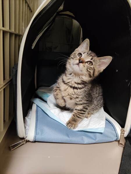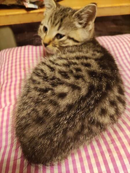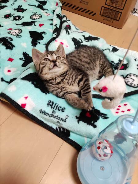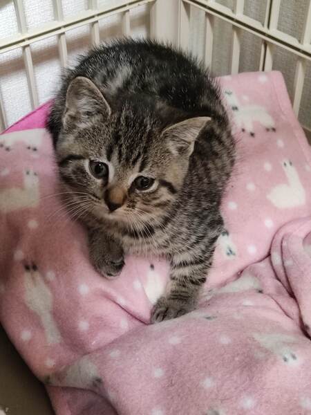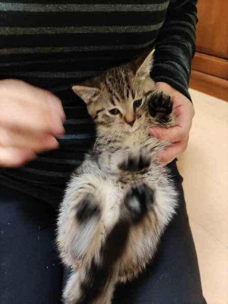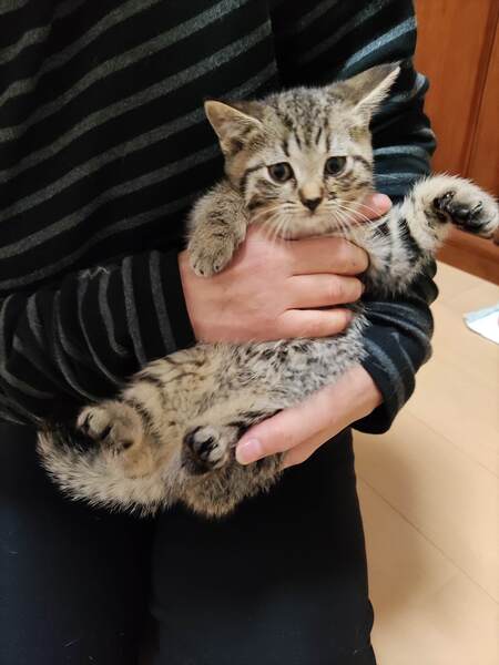 | 特徴(性格など) | ブリティッシュショートヘアーのハーフで、毛が中長毛、フワフワしてます。 ウィルス検査 エイズ→陰性 白血病→陰性 滴下済み(ノミ、ダニ、回虫駆除薬 キジトラガラ柄、顔は横広でまぁるい感じで可愛い顔してます。性格は控えめ、抱っこして撫でると大人しくしてます。ご飯もりもり食べ走り回り元気です。 母猫推定5才、可愛い顔していて性格もおっとり、人馴れしてます。 |
