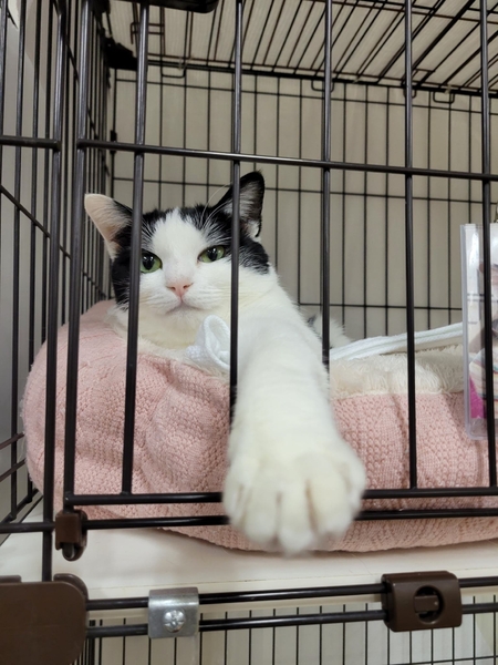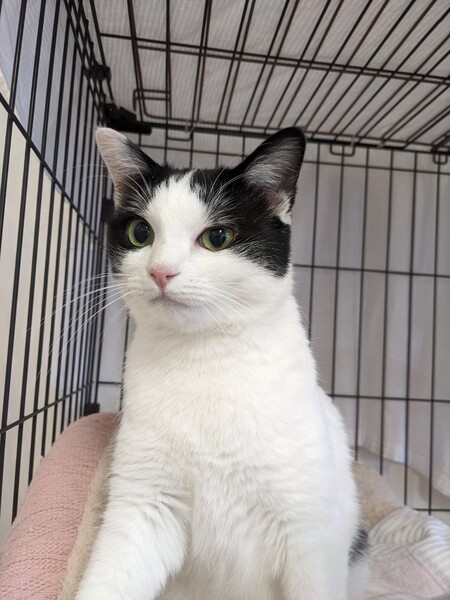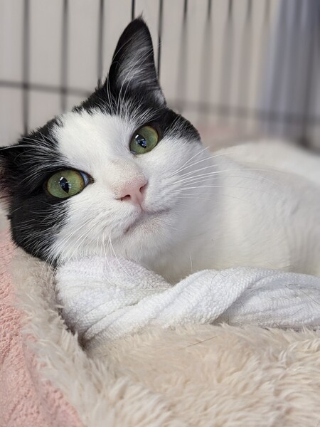 | 特徴(性格など) | 2021.4.9生まれ(推定) 毛色:白黒 超絶美人なエミリー♡ その美貌は千葉支部ナンバーワン!? ちょっぴりビビリなところはありますが、ナデナデが大好き♡ 途中でやめると、『まだですわよ!』とお仕置きされることも笑 お尻トントンされると、腰を高~くしてクネクネ甘える姿もかわいいです!! |