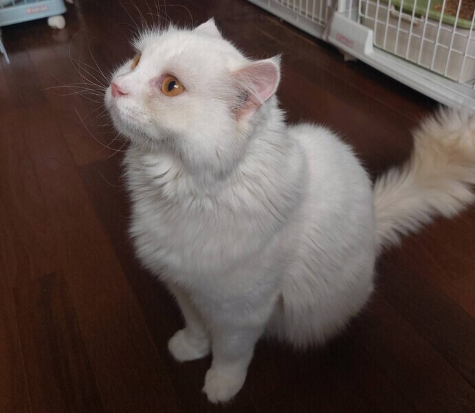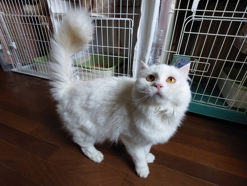 | 特徴(性格など) | ◆ナーニくん 大きな体の甘えん坊白猫男子 ○横浜市内の多頭飼育崩壊現場より保護しました。 ○推定3〜5歳くらい(2024年1月時点)の白猫の男の子です。 ○しっぽは長くてまっすぐです。 ○大きな体と大きなお手々、フサフサの尻尾がチャームポイントです。 ○人間大好き、近づいただけでゴロゴロと踏み踏みが止まりません。 ○抱っこされると嬉しくて踏み踏み、人の顔にも手を伸ばして触ってくる天真爛漫な性格です。 ○ただ、爪切りなど嫌な時は噛んでくることもあります。 ○遊ぶことが大好きなので、たくさん遊んでくれる里親様を募集中です。 ★ワクチン接種済み。不妊手術済み。 ★猫エイズ、猫白血病ともに陰性。 ☆単身のかたはご相談ください。 ☆★☆★☆★☆★☆★☆★☆★☆★☆★☆★☆ ~1月21日(日)市が尾にて譲渡会開催!~ ◎場所・・「東急ドエル市ヶ尾プラーザビル2階集会場」 神奈川県横浜市青葉区市ヶ尾町1154-2 田園都市線「市が尾」駅西口より徒歩約2分 ◎日程・・1月21日(日)(雨天決行) ◎時間・・13時00分から16時00分(受付は15時30分まで) (会場に利用可能な駐車場はございません。近隣のコインパーキングをご利用ください。) *12:45よりも前の時間いお待ちいただくことはできません。 *混雑状況により、入場制限をさせていただく場合がございます。 ※参加予定の犬猫は体調により参加できない場合があります。ご了承ください。 ☆★☆★☆★☆★☆★☆★☆★☆★☆★☆★☆ |