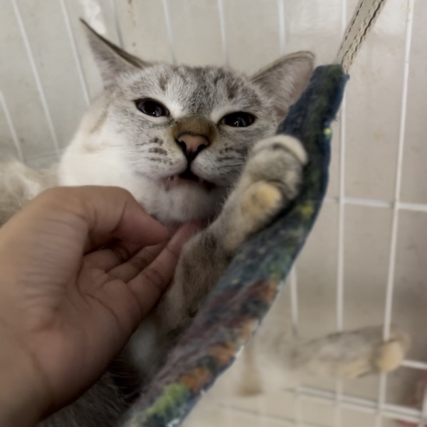 | 特徴(性格など) | まだまだ人に心をゆるしてくれない状態です。 怖がりさんで、手が近づくだけでドキドキしてしまいます。 えらいところは、決して攻撃はしてこないことです。 穏やかな性格の子だと思います。 姉妹のながれぼしちゃんと仲良しです。 カリカリ派で、グレインフリーがお好みのようです。 |