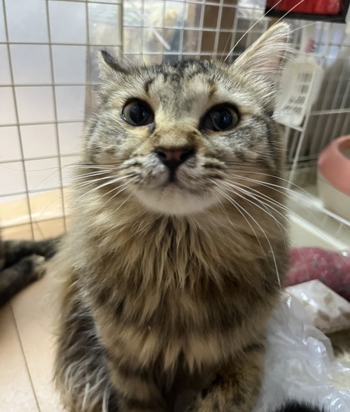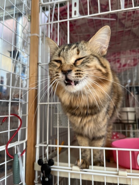| 特徴(性格など) | ふわふわのキジトラさんで見るからにあまえんぼうな愛らしいお顔をしています。 だっこ大好き、チューもしてくれます。 人間大好き超あまえんぼさん。 構ってほしくていろんな策を講じて「かまってかまって」アピールします。 |