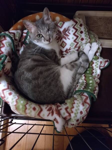 | 特徴(性格など) | 片目ですが、日常にはなんの支障も無く、とても元気で遊ぶ事が大好きです。 食欲旺盛です。 人に甘えたくてとにかく触ってほしいようです。 いろんな事に興味津々ですが、少しビビり屋さんなようで、恐る恐る近付いていく所も可愛いです。 |