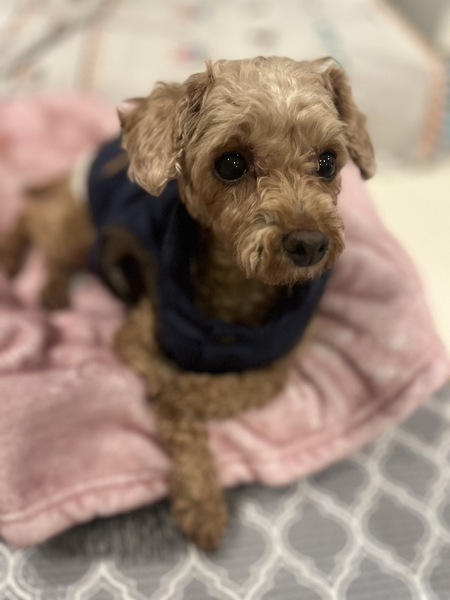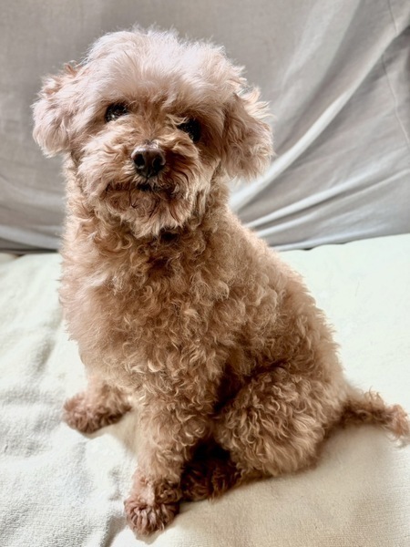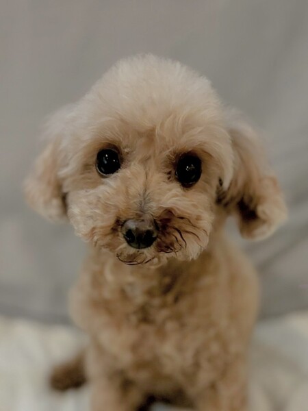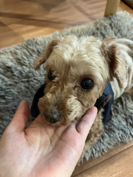 | 特徴(性格など) | 【名前】輝 てる (メス) 【年齢】推定6歳 【犬種・色】プードル 【毛色】アプリコット 【体重】3キロ 【性格】ビビりですが甘えん坊です。 【トイレ】シートの認識はあります。成功率60%位です。 【散歩】練習中です。 【吠え】留守番になる時、急に誰かが来た時などに吠えますが声帯を切られている為かすれた声です。 【健康状態】食欲旺盛です。血液検査、心音異常なしでした。 【その他】お留守番はフリーでお願いしています。 |