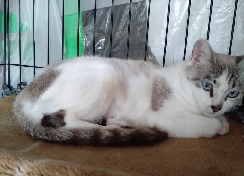 | 特徴(性格など) | 妊娠していると気付かずに不妊手術の為動物病院に入院。 その翌日に出産し、7匹の子猫を育てました。 子猫たちは無事に里親さんが決まり引き取られ、今は子育てから解放されのんびりしています。 とてもおとなしい子で人慣れもしています。 虫落し済みです。 |