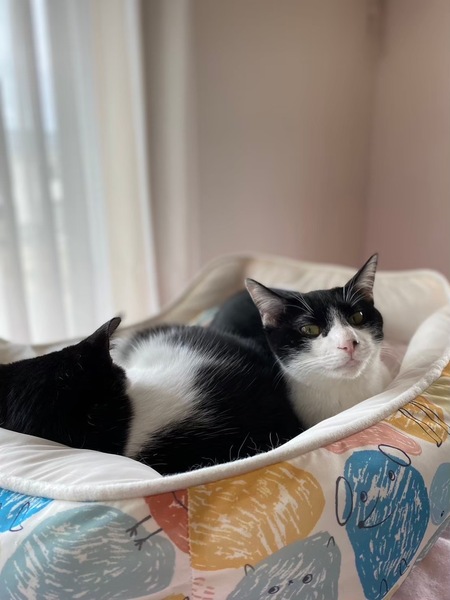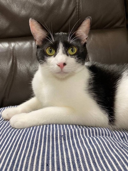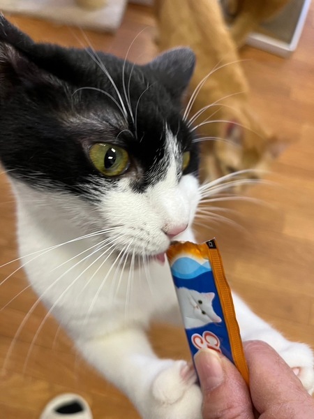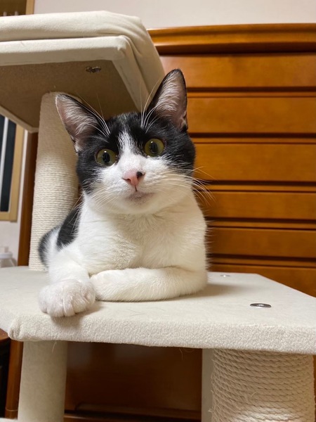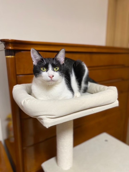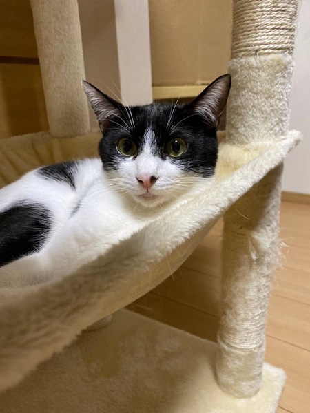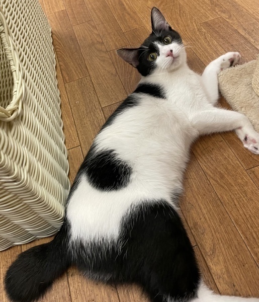 | 特徴(性格など) | 2023.4.1生まれ(推定) 毛色:白黒 深めのハチワレ・ピンクのお鼻の黒ポチ模様がチャームポイントなトマト☆ と~っても甘えん坊さんで、ナデナデしているとお腹を見せてゴロンとしちゃいます。 人馴れしているので、新しいご家族にもすぐに馴染んでくれるはず! とにかく元気いっぱいな、やんちゃ娘♡ 遊ぶの大好き♪運動神経も抜群なので、たくさん遊んでくださる里親様、 またはフレンドリーな先住猫ちゃんがいるお家が良いかもしれません。 |