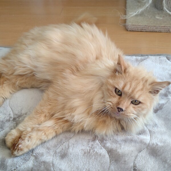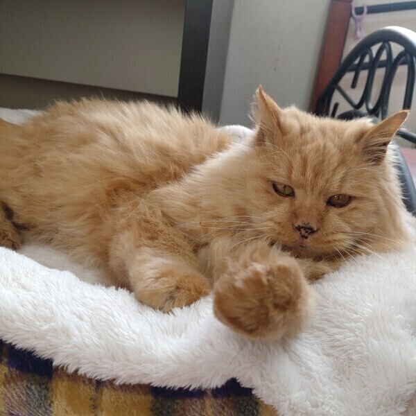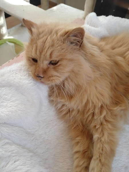| 特徴(性格など) | とても穏やかで大人しい性格です。 ちょっと怖がりな一面もありますが、生まれた時から人に可愛がられていたのでとても人馴れしています。 スリゴロさんで撫でられるの大好きな甘えん坊。 夜は布団に入って一緒に寝ます。 他の猫たちと暮らしていたアパートが解体されてから保護するまでの3ヶ月で左前足を脱臼しそのまま固まってしまっていて、歩き方がヒョコヒョコしてます。 普段の生活に支障は無く、ジャンプやおもちゃ遊びも爪とぎも上手にできます。 体重は3kg程度で男の子としては小柄です。 何となくポケーっとしててとても可愛い、長毛でフワフワの茶トラ男子です。 去勢手術済み ウイルス検査(エイズ、白血病共に陰性) 三種混合ワクチン接種 ノミ、ダニ駆除済み 便検査、駆虫済み マイクロチップ装着 |