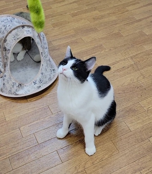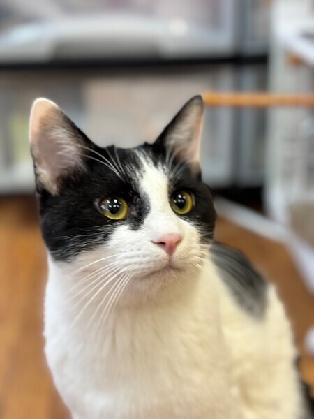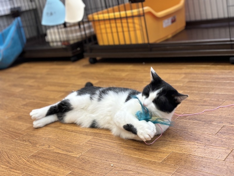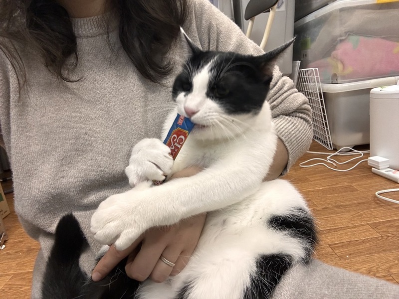 | 特徴(性格など) | 2023.5.15生まれ(推定) 毛色:白黒 ムッチムチの甘えん坊男子、ティモシー。 まだ子猫ですが、たくましいボディをしています! 初対面だと緊張してしまうこともありますが、 ナデナデされたりオモチャを見せればイチコロ♡ 元気いっぱい、食いしん坊!! とーっても甘えん坊さんなので、ティモシーと一緒にいる時間を長く取れる お家が希望です☆ |