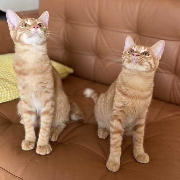 | 特徴(性格など) | ◎シオン(茶トラ)♂尻尾長い 家族には甘えん坊で好奇心旺盛な茶トラ男子です。 お留守、先住さんもOKでワンコのいる預かりさん宅で暮らしています。 ☆兄弟猫のポロンくんとのペアでの譲渡を希望しています。 ◎ポロン(茶トラ)♂尻尾短い ●健康状態 とても健康で元気です 避妊手術済み ウイルス検査(エイズ・白血病)陰性 ワクチン 駆虫 検便 シャンプー 爪切り |