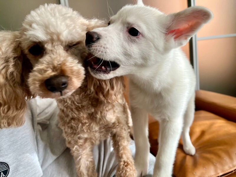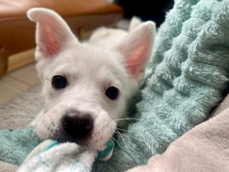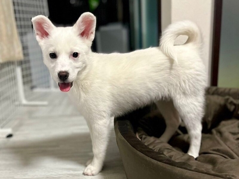 | 特徴(性格など) | 【仮名】ニジュウ 【生年月日】推定2023年11月上旬〜中旬頃生まれ 【種類】MIX 【成犬時サイズ】中型犬(10〜15kg前後) 【毛色】ホワイト 【性別】メス 【避妊】適正時期になり次第飼い主さまで必ずお願い致します。 【混合ワクチン】1回目 1/27予定 【駆虫】済み 【健康状態】良好。 【性格】先住犬のことが大好きで、フリーにするとすぐにかけつけます! 人と遊ぶのも大好きでオモチャを持って膝に乗ります! ごはんは1日3回で完食しています! 【ケージ】お留守番や就寝時はケージ内で過ごしています。 【トイレ】ケージ内シートには100パーセントできていて、フリー時にはリビングのトイレコーナーに90パーセント成功しています! |