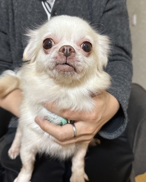| 特徴(性格など) | 【名前】雛 ひな(メス) 【年齢】6歳以上 【犬種・色】ロングコートチワワ 【毛色】茶×白 【体重】2.8キロ 【性格】甘えん坊で抱っこが大好きです。犬にも人にもフレンドリーです。 【トイレ】練習中。 【散歩】上手に歩けます。 【吠え】物音や要求吠えはしますが声帯を切られているので声は出ません。 【希望する条件】フレンドリーなので一人っ子でも多頭飼いでも大丈夫です。 【健康状態】声帯を切られています。耳血種で耳が立たずに縮れた感じです。 【その他】お留守番はフリーでお願いしています。 ※ 外飼いは不可。 ※ 高齢者や単身者からのお申込みは環境によります。 |