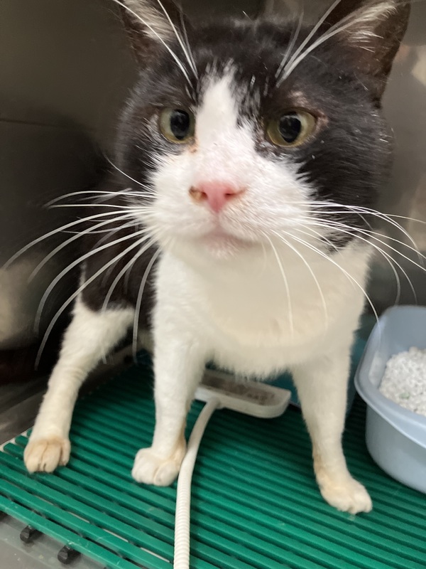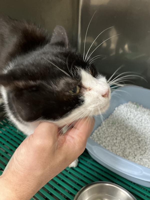 | 特徴(性格など) | 白黒の猫です。 白血病・猫エイズは陰性で、その他ワクチン接種予定です。 甘えん坊で、しつこいくらいに頭を擦り付けて来ます。耳の後ろの付け根を掻いてもらうのが好きです。 人懐こく、人見知りはしません。平和主義でケンカは苦手です。 シャーすることもありませんし、引っ掻いたり噛んだりすることもありません。 ただ、人の体につかまる時は遠慮なく爪を立てるのでご注意(笑) そのぶん好奇心も少ないため、おもちゃにも興味を示さず、一緒に遊びたい人には向かないかもしれません。 成猫なので、それなりの“ふてぶてしさ”や“したたかさ”はあります。 抱っこされるのは得意ではありませんが、膝や肩の上に乗るのは好きな方だと思います。 食欲旺盛でグルーミングも得意な方だと思うので、とても健康です。 ただ、体力が落ちてくると、すぐ鼻水とヨダレが出がちです。その状態でも遠慮なしに顔を擦り付けてくるのでご注意(笑) 放し飼いにしていましたが、周りが地域猫だらけでウチにも自由に出入りしていたため、 平和主義の彼は、マーキングで縄張りを主張することもなく、 ほとんど家の中にいたので、室内飼いに向いていると思います。 現在避難先で動物病院に預かってもらっています。 ペット用のトイレも抵抗なく使用し、先生からも里親はすぐ見つかるだろうとお墨付きをもらいました。 可愛い奴です、よろしくお願いします。 |