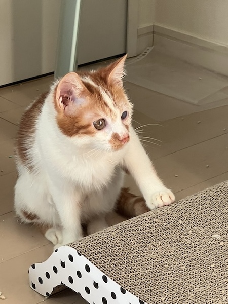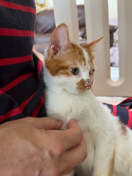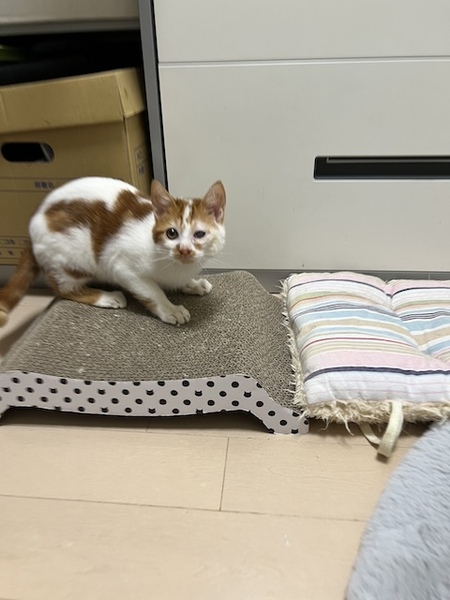 | 特徴(性格など) | ☆☆☆ご希望の方は、以下のアンケートフォームにご記入の上、送信してください☆☆☆ ねこ親希望アンケート→ http://chibawan.net/contactform_cat 【猫No】3771 【愛称】ジジ 【性別】オス 【年齢】3ヶ月(23/10/01頃生) 【毛色】茶白 【体重】2240g(24/01/21現在) 【状態】ワクチン接種済(23/12/25)、血液検査済(エイズ-・白血病-)、駆虫済、ノミダニ駆除済、トイレ躾済 【預かり場所】東京都八王子市 【日記】Instagram @nicomama9 (https://www.instagram.com/nicomama9/?hl=ja) 【経緯】横浜市動物愛護センターから引き出しました 【性格】獣医さんの診察台の上でもゴロゴロ言う甘ったれで活発な男の子です。 【その他】預かり宅での様子はインスタにご紹介しておりますので、ご覧ください。 現在左目の治療中です。今後とも治療を続けていただけるご家庭を希望します。お届けは去勢手術・マイクロチップ装着などの医療が終わってからとなります。 完全室内飼育で終生愛情をもって飼養してくださり、ジジに合った生活スタイルで暮らしてくださる方、脱走対策に最新の注意を払い、労を惜しまず入念に脱走対策を講じてくださる方、定期的なワクチン接種、必要な医療処置等の健康管理をお約束していただける東京近郊の方からのお問い合わせをお待ちしています。 大変申し訳ありませんが、子猫のため、55歳以上の方からのお申し込みはお断りすることがございますので、ご了承ください。 |