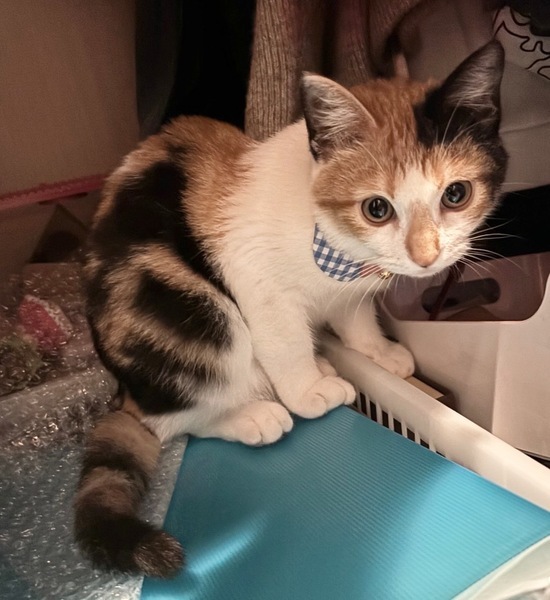 | 特徴(性格など) | 3月10日(日)12:00~16:00(最終申込15:30) ねこざんまい譲渡会【東日本橋会場】に参加予定です! 会場の案内はこちら♪ https://ameblo.jp/neko3mai/entry-12807190298.html ※猫ちゃんとのお見合いは譲渡会となります。 譲渡会ご来場につきまして、事前予約は不要です。 どうぞご家族みなさまでご来場下さい♪ ★★★ご来場前に必ずご確認下さい★★★ 《里親様へお願いはこちら》 http://www.neko3mai.com/condition/condition.html どうぞご家族みなさまでご来場下さい♪ ★★★ご来場前に必ずご確認下さい★★★ 《里親様へお願いはこちら》 http://www.neko3mai.com/condition/condition.html 《家族募集中猫ちゃん一覧はこちら》 http://www.neko3mai.com/entrycats/entrycats.html ◆ 名 前 ◆ ジュンジュンちゃん ◆ 年 齢 ◆ 5ヶ月半 ◆ 性 別 ◆ 女の子 頭のいい三毛猫で、ちょっとおすましツンデレしますが、慣れたら遊んでもらえますよ。 子猫のためまだ詳しい性格は決まっておらず、新しい環境の中で性格や行動が形成されていきます! 子猫は甘えるよりもとにかく遊びたいお年頃のため、成長共にヤンチャに成長し、賑やかを通り越す位に元気いっぱいに成長していきます。 また子猫は風邪をひきやすく、季節の変わり目や環境の変化で獣医さんに通う頻度が増えるかもしれません。 気持ちだけでなく、時間と経済面にも余裕があり、細やかなケアが必須となります。 それらを踏まえ、さらにお部屋中走り回られても問題ないよ!という覚悟と、ケガをしないようにきちんと整理整頓されたお部屋に自信のあるご家族をお待ちしております♡ 目下、大切な社会化期のため、同じ月齢位の猫ちゃんと一緒か、年の近い先住猫さんのいるお留守番のないお家を希望します。 脱走や危険防止対策は必須ですので、ご理解・ご協力をお願い致します。 間取り図や玄関やベランダなどの写真をお持ちいただくと、対策の具体的なアドバイスがしやすいかと思います。 フードやキャリーバッグ、トイレ等、一部の準備品を指定させていただいております。 ペットではなく、《共に暮す家族の一員》としてお迎えくださるお家を希望しております。 先住犬や小さなお子様がいらっしゃるご家庭への譲渡は、ご希望に添えない場合がございます。 脱走や危険防止対策をしていただけないご家庭への譲渡は、大変申し訳ございませんが遠慮させていただいております。 |
