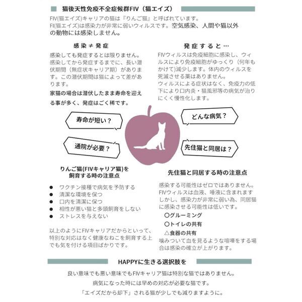 | 譲渡費用(医療費、交通費など) | ◇ノミ取り:済 ◇検便:1回済 ◇駆虫:1回済 ◇ワクチン:1回済 ◇不妊去勢手術:済 ◇ウイルス検査:猫エイズ(陽性+) 猫白血病(陰性ー) ◇マイクロチップ:未 ◇協賛金 合計金額 24000 円 [譲渡費用に関する注意事項] 1.別途、お届けの際の往復交通費のご負担をお願いしています。 2.実施予定の医療につきましては含まれております。医療情報は初期医療プログラムの進捗に伴い、実際の譲渡成立時には掲載の譲渡金額とは相違する場合があります。お見合い時に保護主へご確認くださいますようお願いいたします。 |