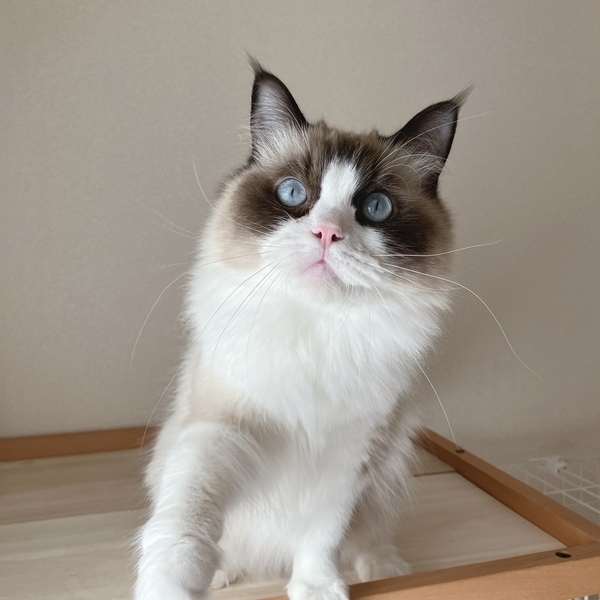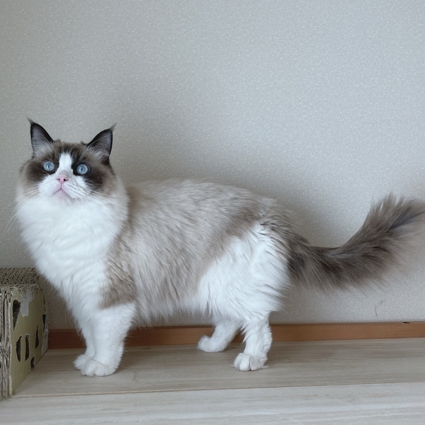 | 特徴(性格など) | [ 毛色 ]シールポイントバイカラー [ 性格 ] 抱っこも撫でられるのも大好きなのに甘え下手で遠くからジーッと見つめて人間が近寄って来てくれるのを待ってます(笑) ラグドールの名前の由来通り、まさに「ぬいぐるみ」という言葉がぴったりな子で、抱っこした時の脱力感が可愛すぎます 愛嬌のある、まん丸お目目と寄り目が可愛くて、ずっと見つめていたくなります♡ |