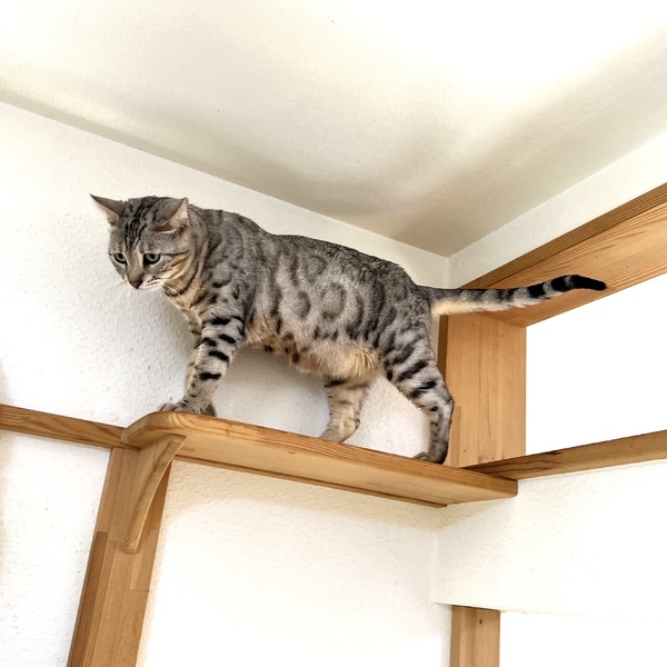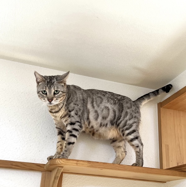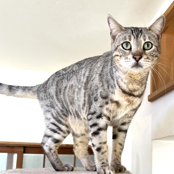| 特徴(性格など) | シルバーベンガルの女の子です。 とても人懐こい性格で撫でてもらうのは大好きですが、抱っこは嫌がります。 純血のベンガルですが、血統書はありません。 |