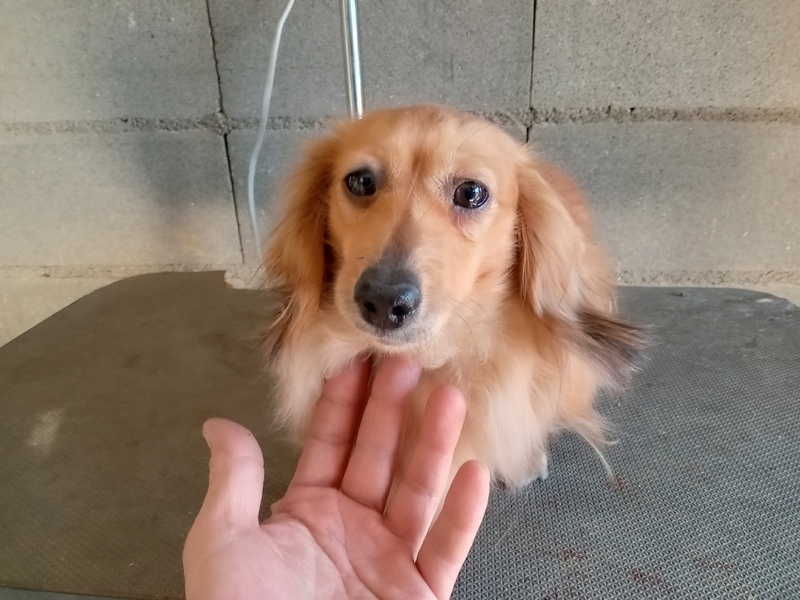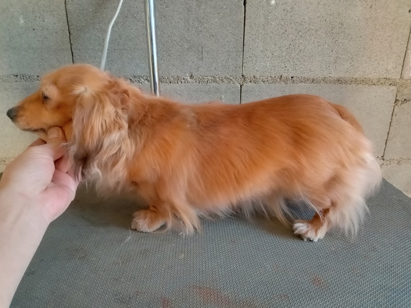 | 特徴(性格など) | ロングヘアーの小柄な子です。 ダックスフンドらしい人懐こさはありませんが、大人しくほとんど吠えません。 跳ねたり走り回ったり、活動的な子ではないです。 尾が半分ほどしかありません。生まれつきではなく、出産時や仔犬時にトラブルがあったものと思われます。 当初かなり太っていたので、がんばってダイエットしました。 写真は太っていますが、現在はもっとスリムです。 室内トイレや散歩はトレーニングが必要です。 留守番、就寝中はケージで大人しくしています。 他の子とも仲良くできます。 |