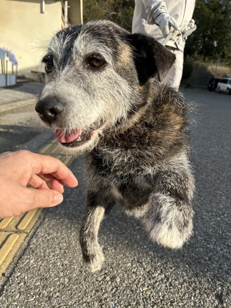 | 特徴(性格など) | 仮名:ガンバ君 犬種:甲斐犬MIX?テリアMIX? 年齢:推定7歳くらい 性別:オス(去勢済み) 体重:14㎏ 状態:混合ワクチン接種・ノミダニ予防・フィラリア(-)・マイクロチップ装着済・去勢手術済・歯石除去 経緯:千葉県動物愛護センター東葛飾支所からの引き出し 性格:テリア風の毛質と、ブリンドル柄(虎毛)が特徴的な可愛い子です! なぜだか背中の前半分までの上半身だけがモジャモジャな毛で、背中からお尻にかけては短毛です。 こんなユニークな容姿はまさにオンリーワンの雑種犬! 人慣れも抜群で、男女問わず誰にでも懐き甘えます。目が合うと尻尾フリフリ♪ 撫でればすぐにへそ天の甘ったれ君。 お散歩はやや引きがありますが、慣れてくれば落ち着いて歩きます。散歩中他の犬と合うと引きが強くなり場合によっては吠えたてることがあるので注意が必要です。 威嚇的な感じではなく興奮して自己アピールで吠える感じです。 室内では他の犬にはあまり興味が無いのか、預かり宅の犬たち猫たちとは特に交流なくマイペースに過ごしています。一緒にくっ付いて寝たりはしますが遊びに誘われても乗らないので、先住犬の遊び相手に、というのは不向きかと思います。 トイレは外派です。 ハウス使用も可能ですが、フリーでも問題なく過ごしています。 お留守番もおとなしくイタズラなどありません。 構って欲しかったりごはんのおねだりの時にも吠えることはありますが、普段は落ち着いていて無駄吠えはありません。 とにかく人間大好きで一緒に居られたらゴキゲン♪というタイプの子です。 お留守番も上手に出来ますので、多少お留守番が長めのおうちでも大丈夫です。 ユニークな容姿と、可愛い性格のガンバ君です。 預かりブログにも日々の様子を綴っていきますのでご覧ください。 http://blog.goo.ne.jp/on_the-wind 2/4(日)の譲渡会に参加します。 https://satoya-boshu.net/event/detail.php?@DB_ID@=5986 |
