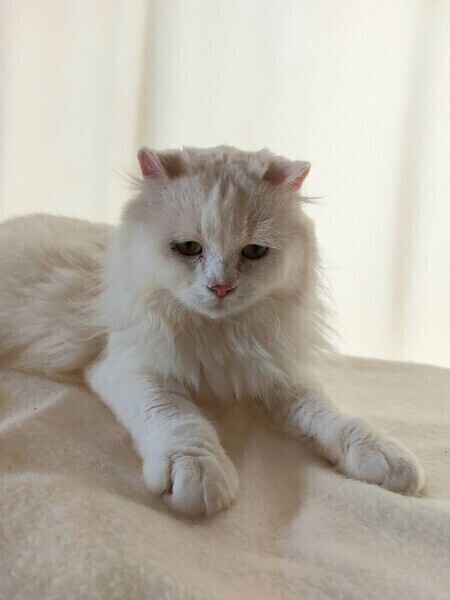 | 特徴(性格など) | ◆ゴーサンくん 甘えん坊のタレ目な白猫男子 ○横浜市内の多頭飼育崩壊現場より保護しました。 ○推定3〜5歳くらい(2024年2月時点)の中毛白猫くんです。 ○しっぽは長くてまっすぐです。 ○人が大好きでのんびりとした男の子です。 ○爪切りは少し苦手ですが、抱っこするとグルグル喉を鳴らします。 ○掃除用のホウキが大好きで、ボランティアが掃除をしているとホウキにじゃれついて掃除が中々進みません。 ○うつむき加減だとタレ目が強調されて、なんとも愛嬌のある顔になるのがチャームポイントです。 ○普段は穏やかな男の子ですが、一度同じケージになった女の子の首に噛みついて嫌われてしまったため、今は男の子と仲良く同居中です。 ○シェルターでは甘えたいのかケージにいると鳴いていることもよくあり、ずっとのおうちでゴーサンをたくさん可愛がっていただきたいです。 ★ワクチン接種済み。不妊手術済み。 ★猫エイズ、猫白血病ともに陰性。 ☆単身のかたはご相談ください。 ○4/14(日)開催の譲渡会に参加予定!下の要項をお読みいただき、ぜひ会いに来てください♪ ☆★☆★☆★☆★☆★☆★☆★☆★☆★☆★☆★☆★☆★☆★☆★☆★☆★☆★☆ ~4月14日(日)新山下にて譲渡会開催!~ ◎場所・・「島忠ホームズ 新山下店」 神奈川県横浜市中区新山下2丁目12−34 JR根岸線「桜木町駅」より横浜市営バス(8.26.58.148系統)乗車「貯木場前」より徒歩約5分 みなとみらい線「元町・中華街駅」より徒歩約15分 ◎日程・・4月14日(日)(雨天決行) ◎時間・・12時から15時 【14時30分受付終了】 (会場に利用可能な無料駐車場がございます。そちらをご利用くださいませ。) *参加の際は、アルコール消毒のご協力をお願いいたします。 *混雑状況により、中止させていただく場合がございます。 ※参加予定の犬猫は体調により参加できない場合があります。ご了承ください。 ☆★☆★☆★☆★☆★☆★☆★☆★☆★☆★☆★☆★☆★☆★☆★☆★☆★☆★☆ |