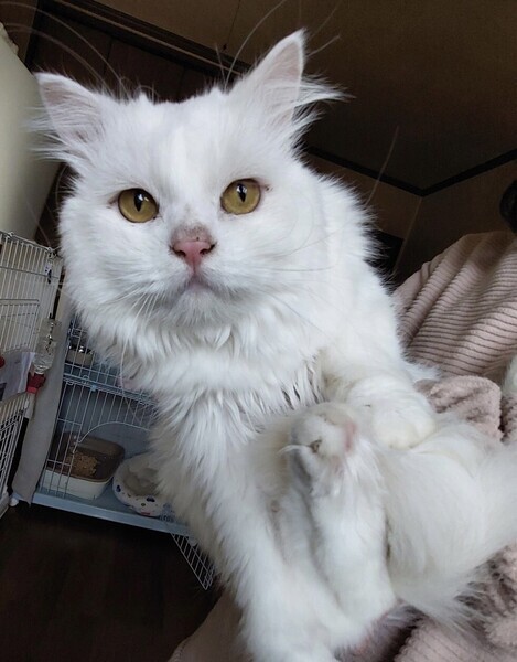 | 特徴(性格など) | ◆シチサンくん 人のことが大好きな孤高の男の子 ○横浜市内の多頭飼育崩壊現場より保護しました。 ○推定3〜5歳くらい(2024年2月時点)の中毛白猫くんです。 ○しっぽは長くてまっすぐです。 ○他の猫は余り好きではなく、出窓からお外を眺めている時間が多い孤高な男子です。 ○抱っこも爪切りもできますが、長い時間は苦手です。 ○毛玉が出来やすい毛質なので、こまめなブラッシングでますます仲良くなっていただけると、抱っこ出来る時間が長くなると思います。 ○また人のことは大好きで、人の話も良く理解している賢い子です。 ○遊ぶことや美味しいフードに目がないので、シチサンだけに愛情を注ぎ、甘やかしてくださる方を希望します。 ★ワクチン接種済み。不妊手術済み。 ★猫エイズ、猫白血病ともに陰性。 ☆単身のかたはご相談ください。 ★★お見合いを設定することも可能です。まずはお申込みください★★ |