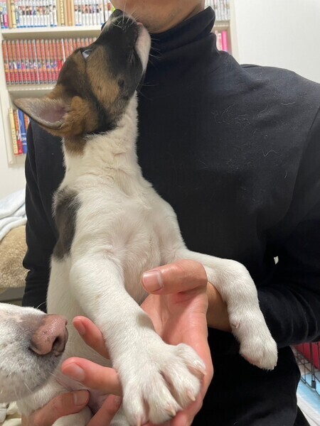 | 特徴(性格など) | 【プロフィール】 名前:カーチス 月齢:2ヶ月 生年月日:2023/12/5生まれ 体重:5.0キロ 性格: 人懐っこい元気な男の子です。 人にも犬にも物怖じせず、好奇心旺盛です。 初めて会う人も犬とも積極的に交流ができ、大きな体の犬とも追いかけっこしようとしたりし、吠えられたり叱られたりしてもへっちゃらな肝が据わっている子です。 特に人に対しては兄弟の中でも一番人懐っこく、手を甘噛みし遊びをせがんでくるところがとても愛らしいです。 まだ吠え方も走り方もよちよちの赤ちゃんでたまらなく可愛いです。 感情表現が豊かでコミュニケーションが取りやすく、人も犬も大好きなところがたまりません。 初めてわんこを迎える方でも先住犬の友だちとして迎える方でも楽しく暮らせるカーチスくんです。 スリール公式HP: https://sourire-hogoinu.jimdofree.com/ インスタグラム: https://www.instagram.com/0103hanayuri0903/ 代表ブログ: https://ameblo.jp/sourire-hogoinu/theme-10119402921.html 【健康状態】 フィラリア:- 狂犬病ワクチン:未 混合ワクチン:1回接種(1回目1/16)※月齢に合わせて順次接種予定 駆虫 :済 基本的な健康診断は終わっており、心音をはじめ健康状態に問題はありません。 まだ生後2か月の赤ちゃんな為、ワクチン接種などの医療は適切な時期に受ける予定です。 子犬らしく元気いっぱいで兄妹と一緒にスクスク成長中です。 駆虫は追加でもう1回行い、再度検便に出し、駆虫の最終確認を行います。 |