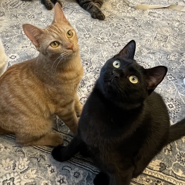 | 特徴(性格など) | ◎ピノ(茶トラ)メス 全身茶トラの女の子は珍しいと言われています。性格は控えめで穏やかです。当初はとてもビビりさんでしたが今ではすっかり甘えん坊です。 ◎ノワール(黒猫)オス 一方のノワールは人にも猫にもフレンドリーな超絶甘えん坊。お膝に乗るのも抱っこもおんぶも大好きです。怖がりのピノをいつも気遣う優しいお兄さん。ペアでずっとのおうちを探しています。 日中は寝てますのでお留守番は問題ないですが、毎日しっかりスキンシップの時間をとってあげてください。若猫は皆そうですが深夜や明け方に運動会を繰り広げます。体も大きくなってきているので走りまわる音もかなりするのでそれに耐えられる飼育環境や家族の大らかさが必要かと思います。 ●健康状態 2匹ともとても健康で元気です 避妊手術済み ウイルス検査(エイズ・白血病)陰性 ワクチン 駆虫 検便 シャンプー 爪切り |