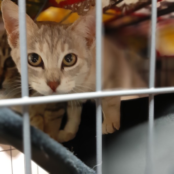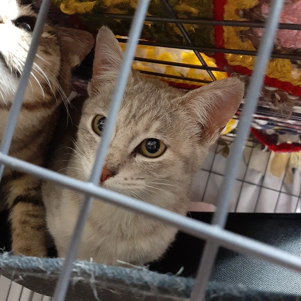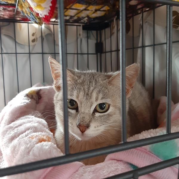 | 特徴(性格など) | グレーに薄い茶が混じる美人さんです。かなり怖がりで警戒心強めです。人馴れはしていませんが、保護した後日々変化しています。 | ||