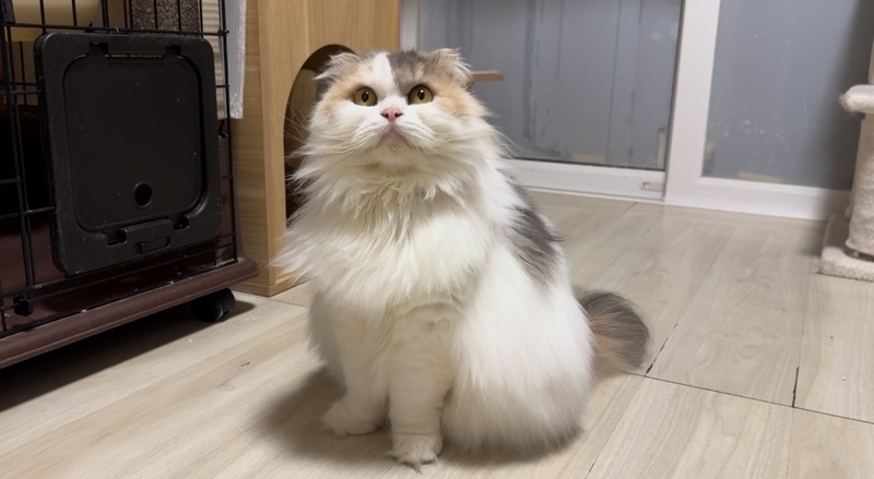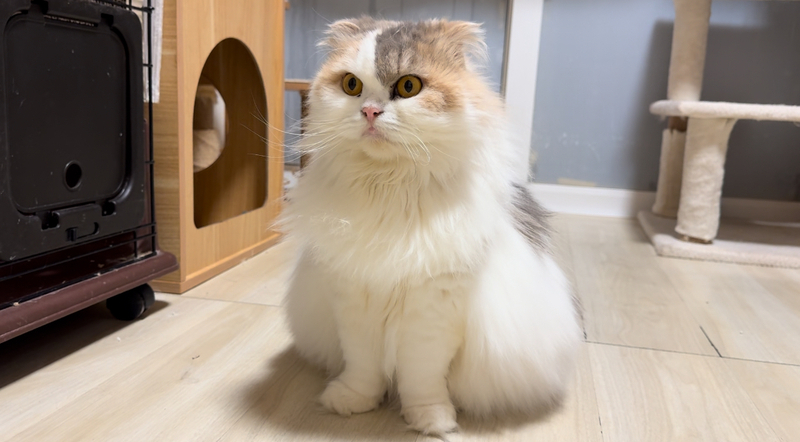 | 特徴(性格など) | スコティッシュフォールドの女の子です。 毛色はダイリュートキャリコです。 ずんぐりむっくりな体型の折れ耳さん。 食いしん坊でのんびりマイペースな性格です^ ^ |