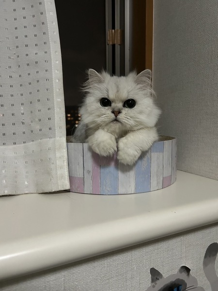 | 特徴(性格など) | 種類 ペルシャ(チンチラ) 毛色 チンチラシルバー 年齢 2020年3月18日生まれ 体重 2.8キロ 性格 時には臆病な面もありますが、活発です。 トイレ システムトイレ 日常の様子 保護されてきた時に比べるとだいぶ慣れてきています。 触ったり撫でたりしても逃げませんが、抱っこは嫌いです。 猫じゃらしが大好きで活発に遊びます。 ひとり遊びもよくしています。猫は好きではないようですので、1匹飼いがよいと思います。 お手入れ シャンプータオルでこまめに拭いて、ブラッシングで清潔を保ってください フード ロイヤルカナン 健康状態 抗体検査 (FIV・FeLV)マイナス ワクチン 3種混合接種済み 避妊・去勢 避妊手術済み その他 聴診・検便 異常なし ノミダニ駆除済み・駆虫薬投与済み ★乳腺腫瘍が疑われ、左乳腺切除手術をしましたが、病理組織検査の結果、明らかな腫瘤は認められませんでした ★被毛が脂性ですので定期的にシャンプーをしていただきたいです。シャンプーはおとなしくさせてくれます。毎日のブラッシングは必須です。 |