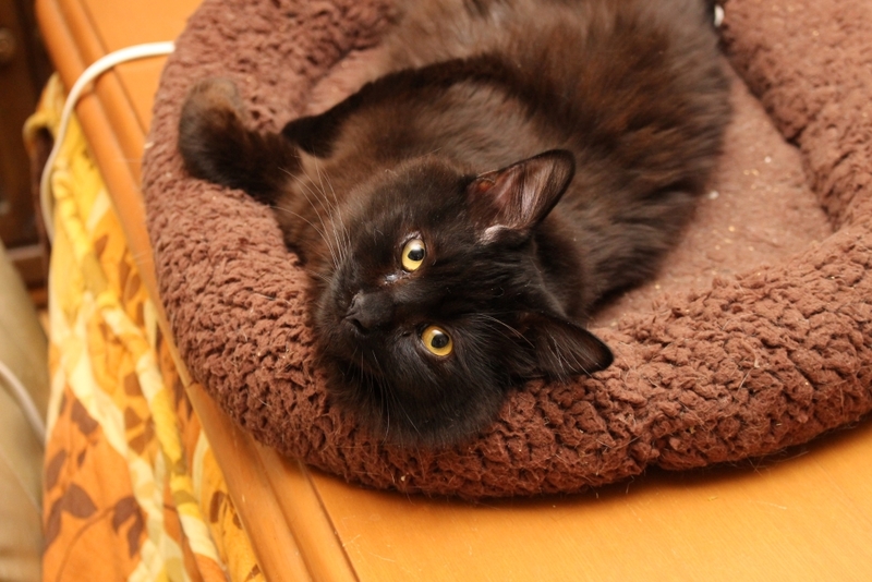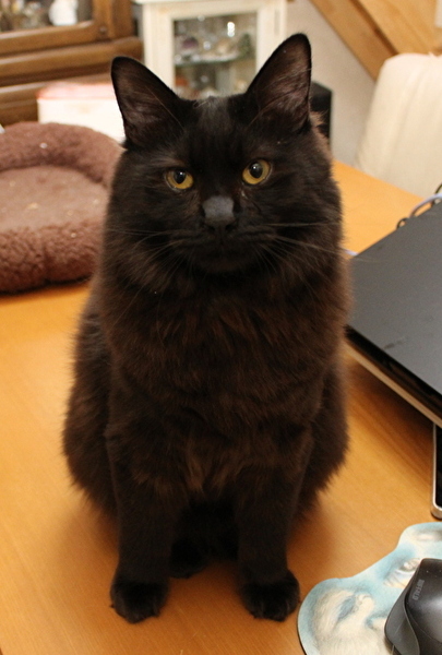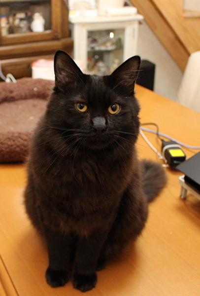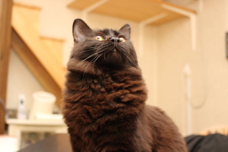| 特徴(性格など) | 保護時は680gでしたが、どうやら大型の猫らしくメキメキと成長して現在は4㎏あり、毛色はチョコレートがかった黒色で、ヨークチョコレートという猫に似ています。 性格は穏やかで愛情深く、後をついて回ったりする甘えたちゃんで可愛い声で喋ります。 膝の上にも乗ってきますし、抱っこも好きなようです。 顔をペロペロと舐めてくれたり、犬っぽい面も持ち合わせています。 獣医さんにも、「人懐こくて、ものすごくいい子!」と太鼓判をいただきました。 とはいえ、まだまだ中身は子猫ですのでやんちゃもしますし、オモチャを追いかけ”ばびゅーん!”と走り回ったりもします。 少しビビりな面もあり大きな音が苦手です。 猫のことは好きなようで、グルーミングしあったり引っ付いて寝てたりします。 保護時に猫風邪をひいていましたが、口から投薬も簡単、目薬も挿せますし、シャンプー・ドライヤーも出来ました。 なんでもさせてくれるよい子ですし、体調も安定する月齢なので育てやすいです。 |