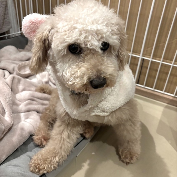 | 特徴(性格など) | 性格・特徴 【性格】 明るくいつも元気いっぱいで人も犬も大好きな女の子です。 可愛い笑顔でピョンピョンしながら、遊ぼう!とつぶらな瞳で可愛くおねだりしてくれます。 【ご飯】 ドライフード40g(フードはシュプレモでお願いします)を1日2回食べています。 フードは急な変更でお腹を壊さないよう、シュプレモでお願いします。 【お散歩】 お外に慣れる所から始めています。 引き続き、トレーニングをお願いします。 迷子札は、首輪に刻印式のIDカラーで装着して頂く事と、ダブルフック型ショルダーリード使用のお約束をお願いします。 【トイレ】 トイレシートの認識はまだありません。引き続き、トレーニングをお願いします。 排泄物は早めの片付けをお願いします。 トレーニングのご相談は承りアドバイスさせていただきます。 【お留守番】 サークルでお留守番できます。 (ソフトサークルは禁止とさせていただきます) 健康状態 ※ 医療に関しまして、当会では、里親様にお繋ぎするまでに、検査や手術、治療等のレスキュー団体で出来る最大限の努力の上で譲渡活動を行っております。ご理解頂ける方のみご応募ください。 名前 マリリンちゃん 犬種 トイプードル 年齢 5歳ぐらい(推定) 性別 女の子 体温 38.7度 体重 4.25kg 口腔 歯石除去済み 心雑音 異常なし 検便検査 異常なし 血液検査 異常なし フィラリア 陰性 レントゲン 異常なし 避妊手術 済み 心電図 異常なし ノミダニ予防 済み ワクチン 接種済み(2024.1.16) 虫下薬 投薬済み(2023.12.28) 狂犬病予防注射 接種済み 畜犬登録 済み |