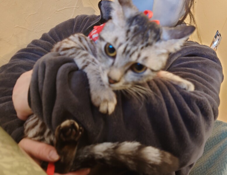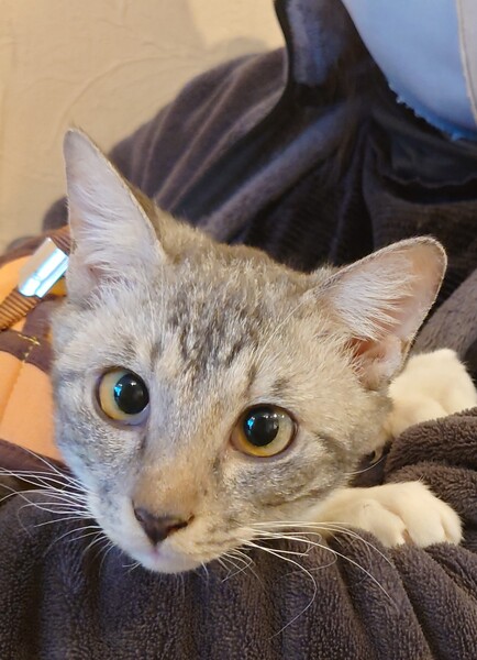 | 特徴(性格など) | 男の子(仮名しらたま君)は白が多いサバトラ✕白?のMIXぽい感じ。女の子(仮名あずきちゃん)はサバトラ。2匹とも尻尾がすらりと長く洋猫の血が入っている感じです。 性格はとても人懐こく甘えん坊で、人見知りせず初対面の人にも抱っこされます。 ご飯も、色々な銘柄を食べてくれます。 仲良し兄妹です。先住犬猫さんとの相性は、環境の変化に慣れたら大丈夫ではないかと思います。 |
