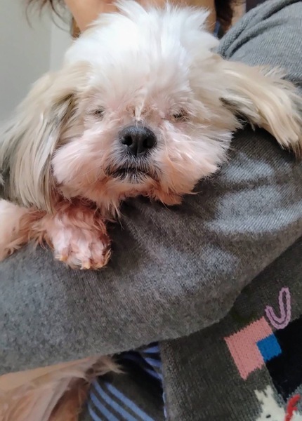 | 特徴(性格など) | 【名前】 冬 (メス) 【年齢】10歳くらいです。 【犬種・色】シーズー (茶.・白) 【体重】3キロ(2024.2月) 【性格】大人しく、穏やかです。 【吠え】吠えません。 【散歩】抱っこ散歩のみ。外は歩けません。 【トイレ】シートにできますが全盲の為、踏んづけてしまうことがあります。 【健康状態】 全盲。眼球が萎縮しています。 目ヤニがたくさん出るため、毎日ウェットティッシュや濡らしたガーゼなどで拭き取りが必要です。耳は聞こえています。 【希望する条件】お留守番短めのご家庭。 個人からの引き取りですが、愛情をかけられていなかった為抱っこをたくさんしたり、愛情をかけてくれる方。 怖がりなので新しい環境に慣れるまでゆったりと待ってくれる方。 ※ 高齢者・単身世帯のお申込み可。 |