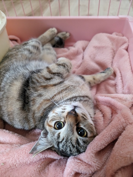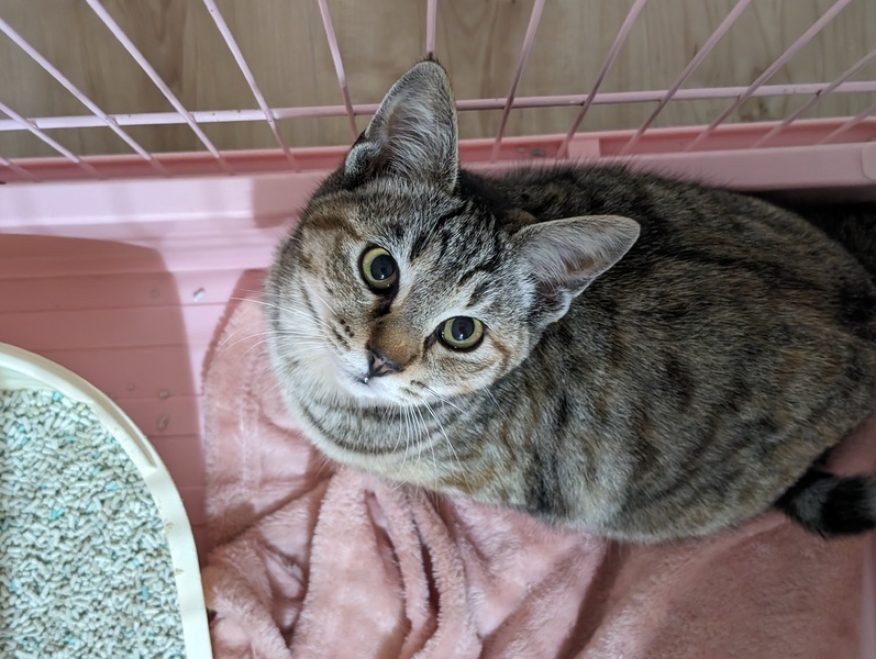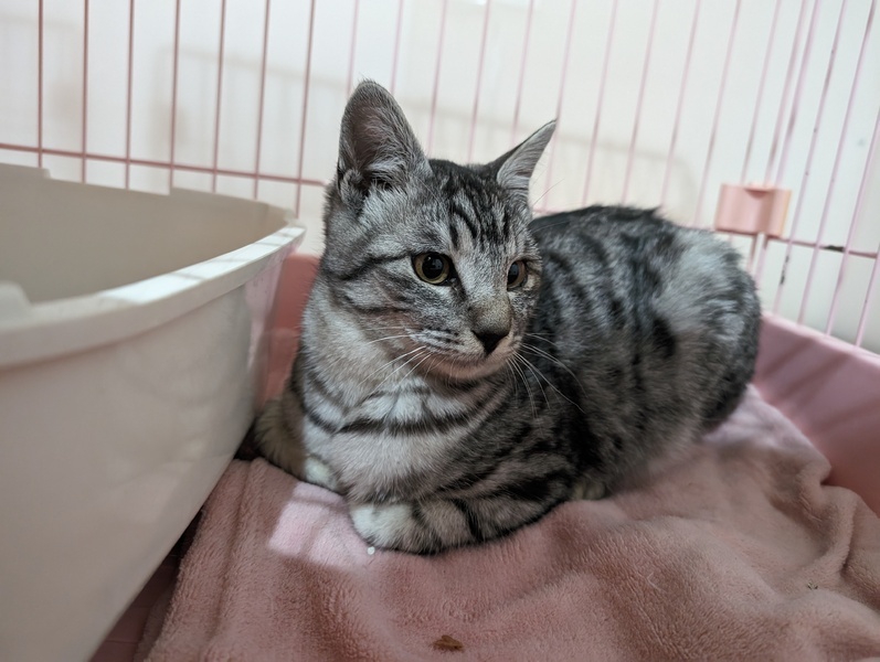 | 特徴(性格など) | 1~3枚目 もも♀ 甘えたさんでコロンと転がり甘えてくれます。 部屋に入るとにゃぁ~にゃぁ~と可愛い声で鳴きます 4~5枚目 けん♂ 慣れない保護施設にきて、少し緊張していますが、 撫でるとスリスリ、抱っこもできます。 グレーの毛色が綺麗なサバトラ模様の男の子。 甘えん坊です☆ 先住猫さんがいらっしゃらない場合は一緒に迎えて頂けると嬉しいです |