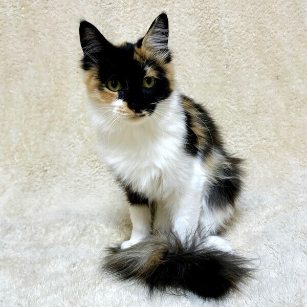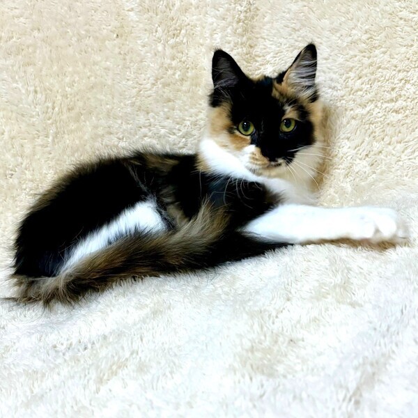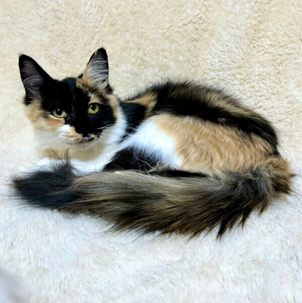 | 特徴(性格など) | 【仮名】雅美ちゃん 【性格】モッフモフでコロコロな雅美(みやび)ちゃん♪ 和を感じる三毛なのに洋を感じる長毛! まさに和洋折衷にゃんこです♪ お顔の模様もモードっぽくて良いデショ♪ 人馴れはあと一息といった感じでとりあえず一回逃げようとしますが 撫でるとすぐゴロゴロいうし三毛特有の気の強さも無いので 安心してお迎え頂けるでしょう♪ まだまだ色々学習中なので同世代にゃんことペアでの お迎えを希望します! ※1ピキ譲渡応相談 |