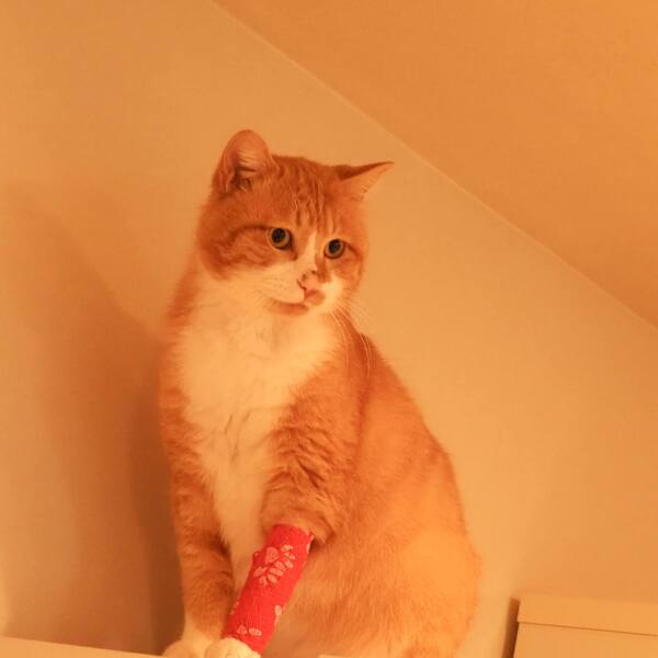 | 特徴(性格など) | 体重6キロのビッグボディでおっとりのんびり、抱っこ大好きな茶白のりんくん。 怪我の治療も、痛みのために鳴き声は上げますが、暴れたり噛んだりせずにじっと耐える辛抱強い性格です。 |