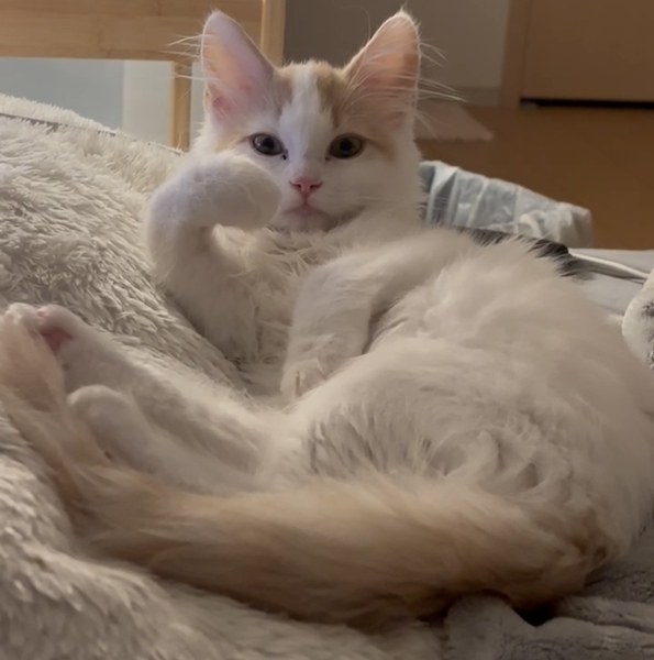 | 特徴(性格など) | マンチカン、中毛種、クリームアンドホワイト 人懐っこい甘えん坊な性格のイケメン君です♡ 食欲も旺盛で調整しながらあげてます*゜ うんちも問題なくします。 |