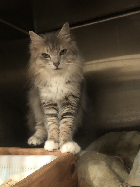 | 特徴(性格など) | 雑種のユミちゃん 綺麗なシルバーの毛色をしていてシュッとした顔立ちの美形さんです 保護当初はシャーシャーでほとんど触れなかったのですが、今ではシャーも言われず触れるようになりました! (少し怖がりながらではありますが、、) ご飯の時間になるとそわそわしだすのが可愛いです ゆっくりと時間をかけて馴らしてくれる方お待ちしています 最後の写真は保護当初の様子なのですが、驚くほど目つきが変わりました、、! 健康状態は良好です 猫エイズ・猫白血病の検査はどちらも陰性です |