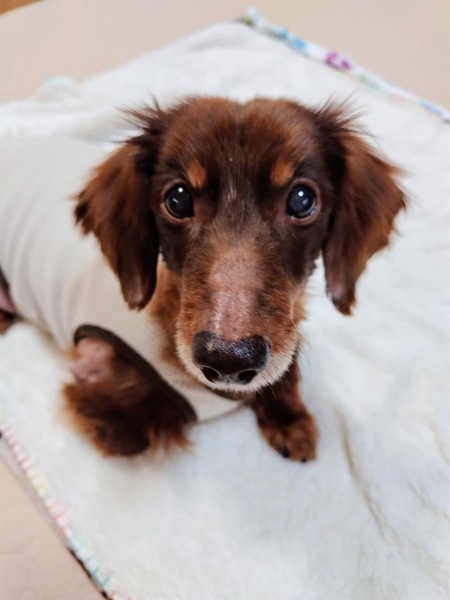 | 特徴(性格など) | 通院が長期になりそうであることを見越して 動物病院近くの預かりボランティアさん宅に移動したその日に 謎のてんかん発作のような症状を発症。 すぐ病院へ運び込み、発作止めの処置をされ、それ以降は発作は出ていないので、 あれは何だったんだろうと一同頭をひねっています。 預かりボランティアさん宅での懸命のケアと こまめな通院で見違えるほどに健康状態が良くなり、表情も明るくなりました。 保護当初分離不安気味でオロオロしていた子でしたが 今では安心感に包まれ、大好きな預かりママさんがおでかけするときも あ、行ってくるんすね~と、ちらっと顔を上げてみるだけ。 お見送りをして返ってくるまで玄関で泣きわめくようなこともなく ベッドでグーグー寝て待っていられます。 皮膚の状態もかなりひどかったのですが まだ脱毛箇所に毛は生えないながらもすっかりハリのあるしっとりとした皮膚になり 投薬と保湿でのコントロールができるようになったからか 本人もつらそうではなくなりました。 トイレはトイレシートを認識しています。 超がつくほどの甘ったれは健在。 これからの人生は家族一同から愛されまくる生活を送らせてあげたいです。 長時間の散歩ではなく、 ペットカートを使いながらの気持ちの良いお散歩。 歯があまり良くない彼のためにご飯選びも慎重に。 シニア犬とのまったり穏やかな日々を過ごしたい方に。 |