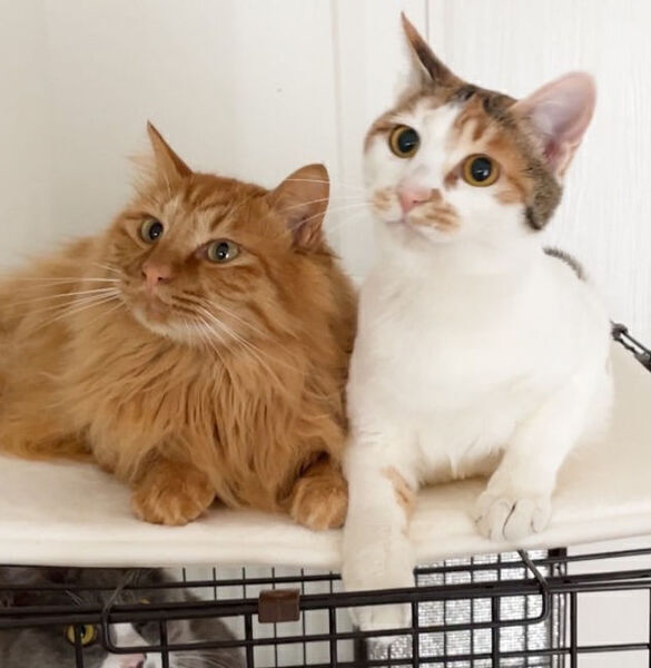 | 特徴(性格など) | ※仲良しですので、てぃくんとのペアでの譲渡になります。 ◎ミケやん(白三毛)メス 2023年8月末生 仲良しのてぃくんのおかげで日々人馴れ度合いが進歩しているミケやん。最近はてぃくんが近くにいなくても自ら撫でて〜とやってくるそうです。 最初は鬼の形相でシャー言い、ちゅーるを叩き落として飛び散ったものを舐めていたミケやん。 預かり宅には他にも猫はいっぱいいますが、やっぱりてぃくんがいいようです。 ◎てぃくん(茶トラ長毛) 2022年生 高齢者が可愛がっていたので人には慣れています。 ご飯欲しさに朝はスリゴロ甘えてきます。猫モテさんで子猫から大人までみんなてぃくんが大好きです。 当初ブラッシングも抱っこも嫌いだったのですが、慣れてきたら両方とも好きになってしまいました。朝起きた時と夜寝る前にお膝に乗るのがルーティンになっています。 ※普段の様子は預かりボランティアのインスタグラムをご覧ください。 https://www.instagram.com/chizuureshino?igsh=ZWhla2ppYXBsZ3Q1 ※YouTubeみなとねこチャンネルでも紹介動画をご覧いただけます。 https://youtu.be/o5o40nrwcT8?si=C1birXKTUTyxX6rw |