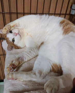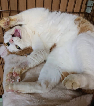 | 特徴(性格など) | 仮名: ぶれっどくん(オス) 毛色: 茶白 性格: 保護したけれども極端な怖がりなので、暫くはそっとしてご飯とトイレの世話だけをしていました。 ケージの中なら、呼べば返事をするようになり、触っても良いよと許可が出るようになり、恐る恐る、ケージから出てくるようになるのに、1年近くかかりました。 今でも、ケージから出てもすぐ戻ってしまうことが多いです。 ケージの中ならお腹も触れるし、ブラッシングすればゴロゴロ言うし、撫でるのをやめると、もっと撫でろと要求するようにもなりました。 他の猫とは特に仲良くすることはありませんが、トラブルもありません。 どちらかというと猫は苦手のようです。 怖いのかもしれません。 首が太くて、顔も大きいがっちりタイプです。 ケージから出ても、すぐに寄ってくることはしませんので、じっくりと時間をかけて向き合ってもらえると良いと思います。 健康状態は良好です 駆虫済 ワクチン接種済 去勢手術済 猫エイズ・白血病ウィルス検査はともに陰性です |